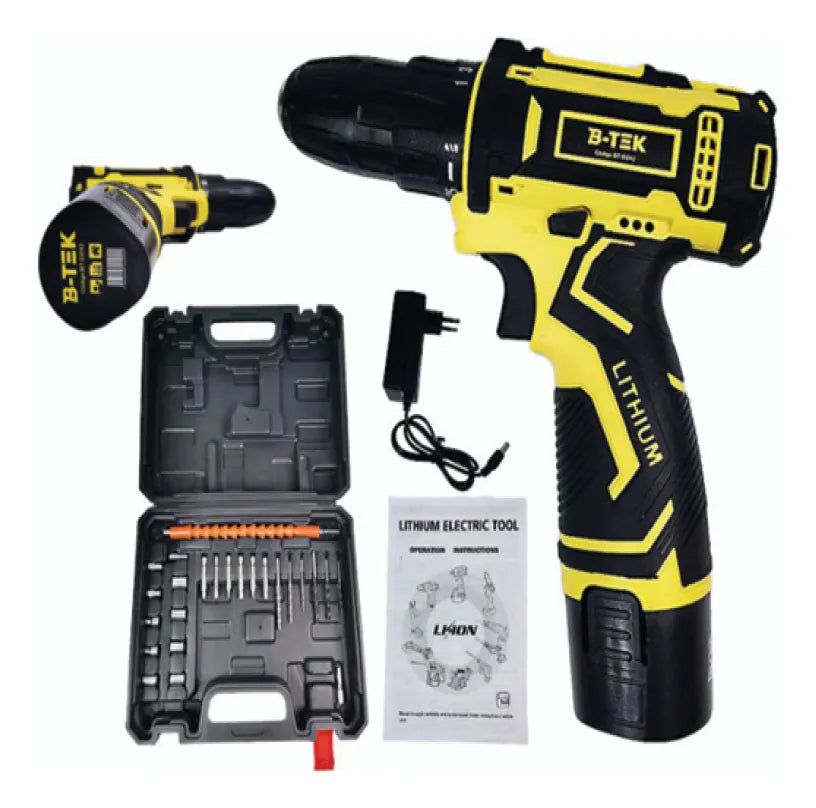 Furadeira e Parafusadeira a Bateria 12V com 24 Itens – Mandril de Aperto Rápido e Controle de Torque